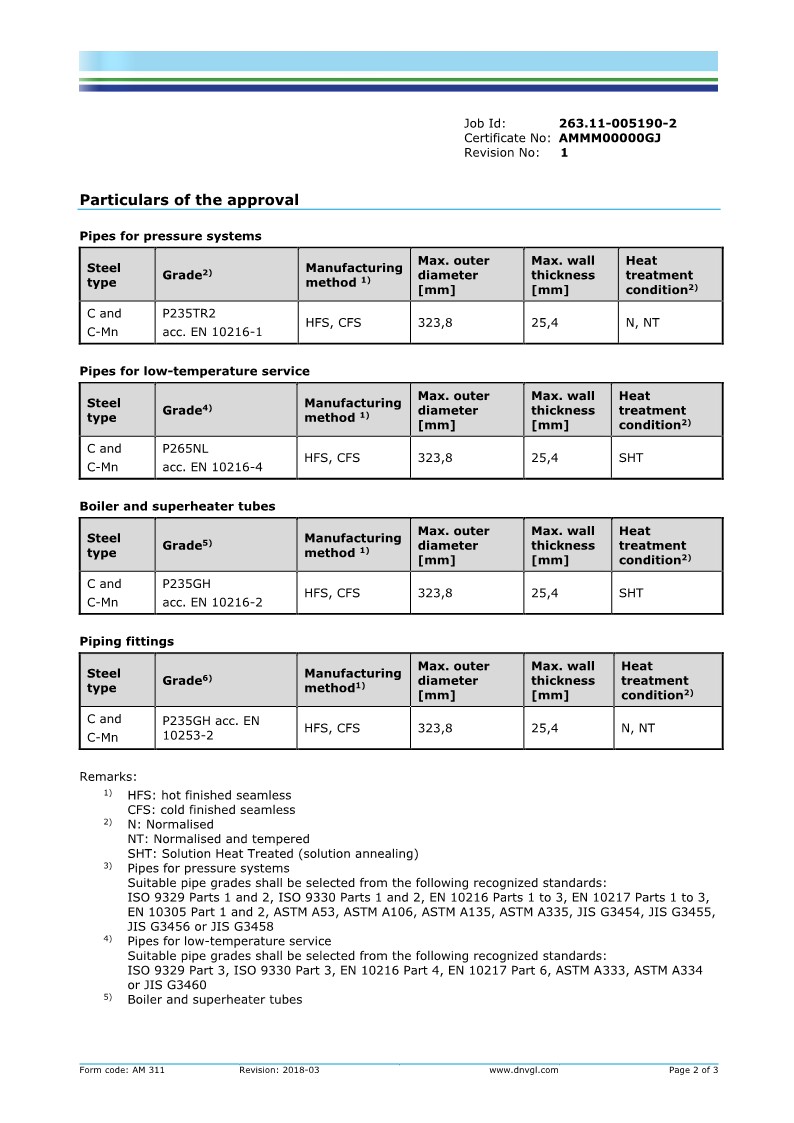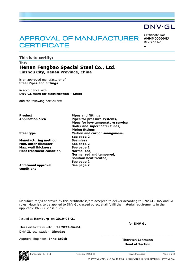 APPROVAL OF MANUFACTURER CERTIFICATE